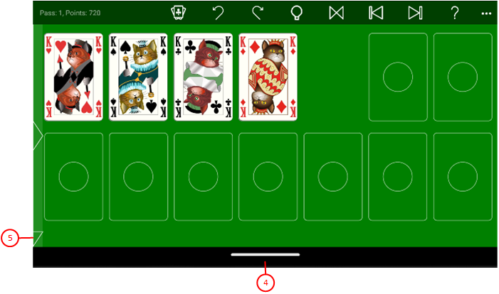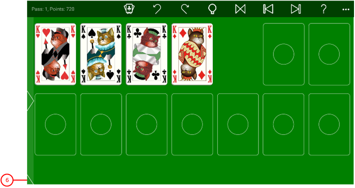 Press this button if you want to exit KubiSolitaire temporarily. The game status is automatically saved. You can open another application from the start screen and return to KubiSolitaire later.