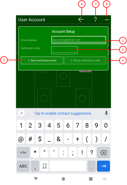 You must enter an email address on it as your account name. A mail with a verification code will then be sent to this address in the 1st step. You will then need to have this code verified in the 2nd step. If the verification is successful, your account will be created. If you cannot create an account, the app will be closed when you exit the pane.