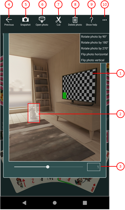 Click this button if you want to insert the marked picture area into the selected card back. The clipping shape must be completely be inside the picture. After clipping, the card back with the new insertion is shown in the game appearance pane and all visible card backs in the game view are also be changed. This button is disabled if the photo panel contains the selected card back instead of a new photo.