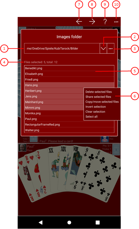 You can select a folder of your choice on this pane, where the card backs and user portraits you have created are stored. You can also copy, delete or share the files.