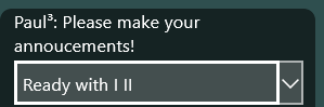 Executes the action associated with the focused input element. Examples: The announcement shown in the focused action box is made; the focused card is played. |