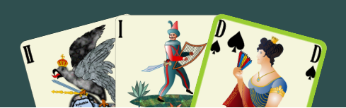 A playing card that has the input focus can be recognized by its border color (figures 40, 41, 51). If the game assistant marks a card (Queen of Spades), it is given a green border regardless of the input focus (figures 40, 51). In image 41, the card selected by the assistant is additionally focused and the border color is slightly yellower.
