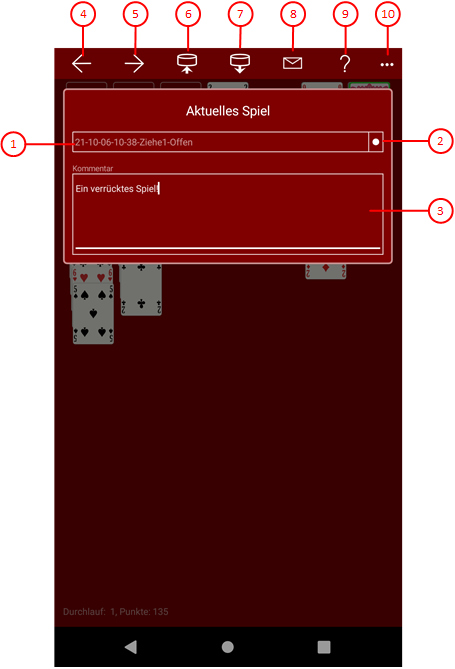 Auf dieser Scheibe können Sie das aktuelle Spiel kommentieren, es sichern, in einen Ordner Ihrer Wahl speichern oder eine in einem beliebigen Ordner gespeicherte Spieledatei laden.