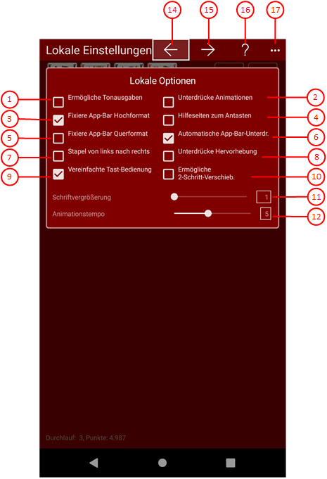 Ist diese Option ausgewählt, belegt der App-Balken im Querformat Platz oberhalb des Spieltisches. Er kann dann im Querformat nicht mehr ausgeblendet werden.