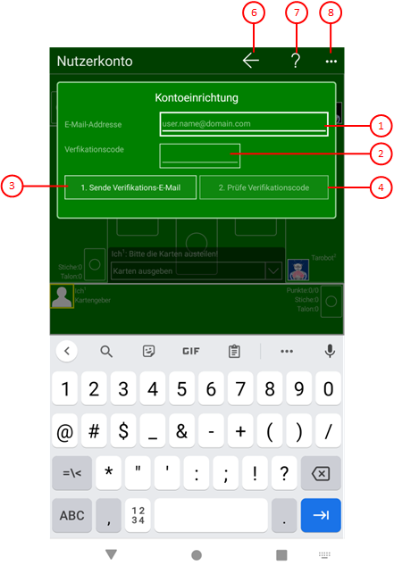 Drücken Sie diese Taste, nachdem Sie den empfangenen Verificationscode eingetragen haben. Falls die Prüfung erfolgreich ist, wird Ihr Konto eingerichtet und Sie können mit dem Spielen beginnen.